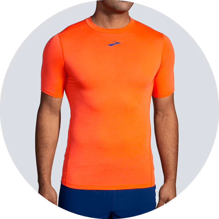 Trail-ready moisture-wicking apparel limits distractions so you can focus on your run. Stay comfortable in cool or warm weather with this new short-sleeve top from Brooks, designed for thermoregulation.