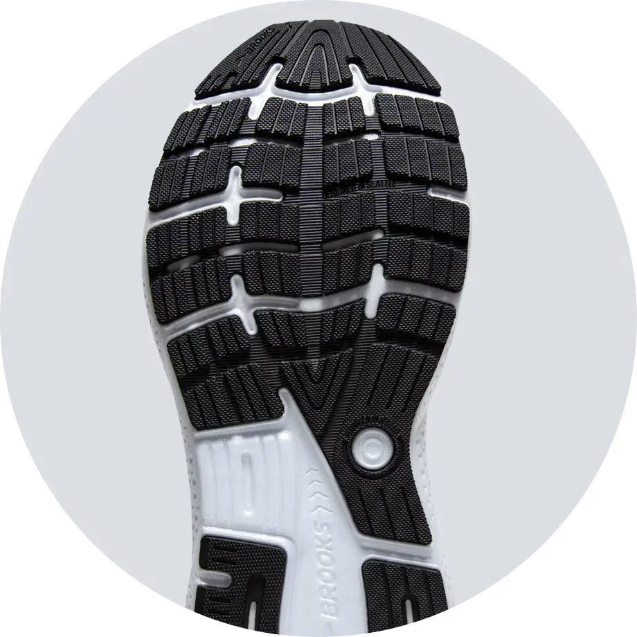Soft rubber on the forefoot and harder, more durable carbon rubber on the heel section.