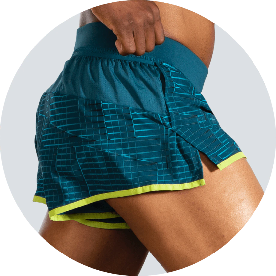 Fit for speed All-new flat waistband and side splits offer secure fit and breathability for speed workouts and race day. Short also features lightweight shell fabric w/ 4-way stretch
