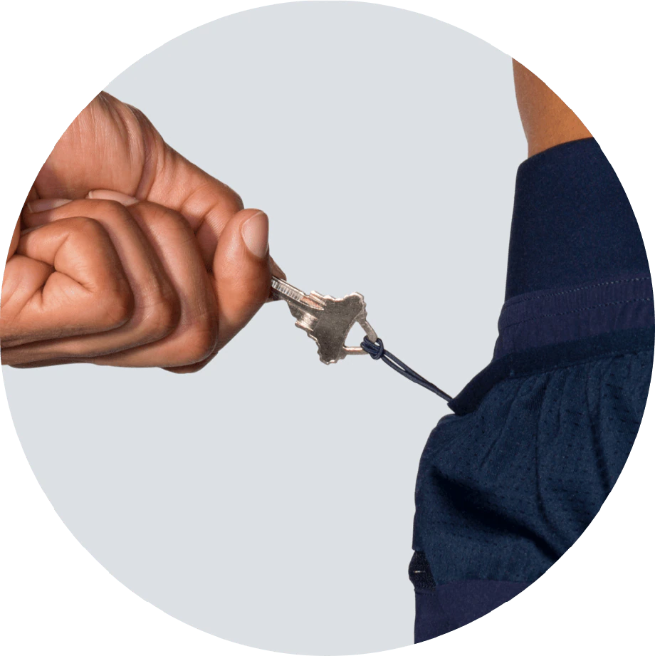 Storage options A zip-secure pocket fits your phone, plus two oversized hip pockets expand to fit other essentials. Includes built-in key loop