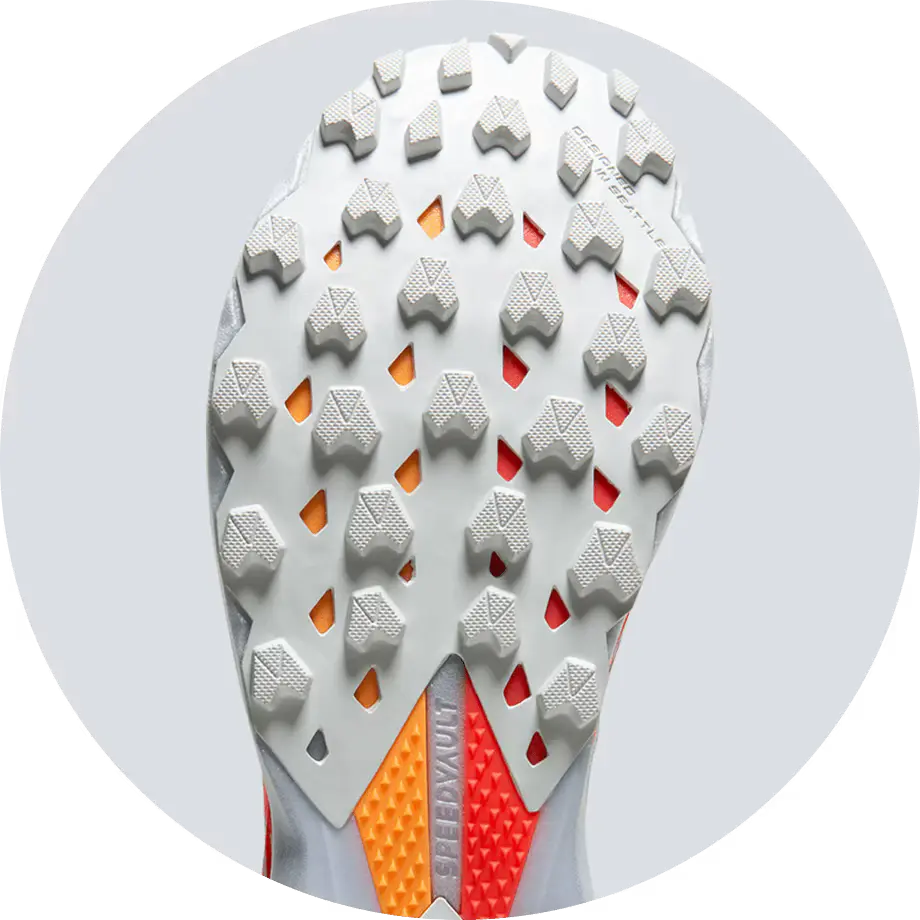 Agile & responsive The midsole and outsole are precision engineered for speed - lower stack height and responsive underfoot feel allow you to remain agile at top speeds and tackle dynamic terrain. The articulated SpeedVault Trail Plate responds to you and helps you maintain your footing.