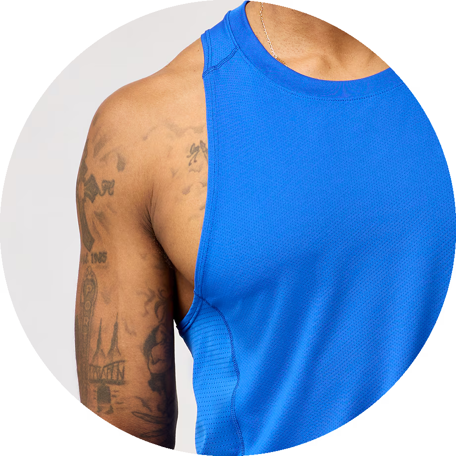 Sweat wicking Breathable and lightweigh GO2 fabric wicks sweat and takes less than 7 minutes to feel dry on the body for long-lasting comfort.