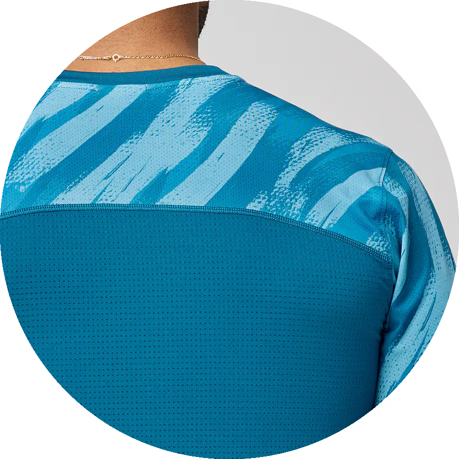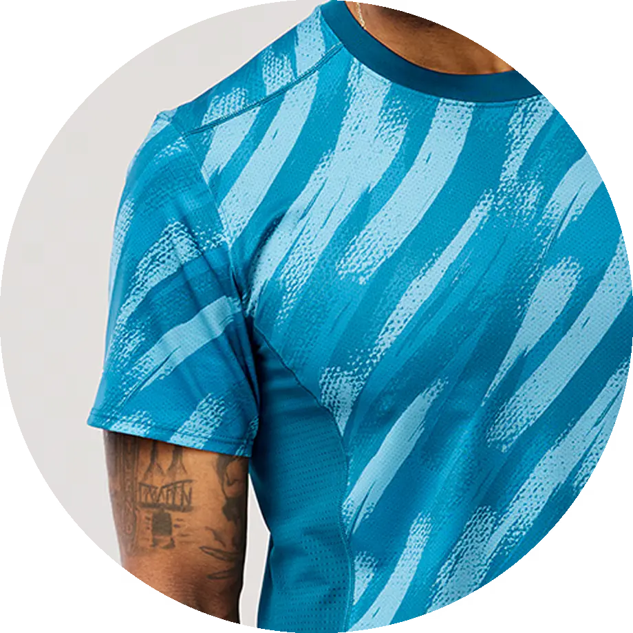 Sweat wicking Breathable and lightweigh GO2 fabric wicks sweat and takes less than 7 minutes to feel dry on the body for long-lasting comfort.